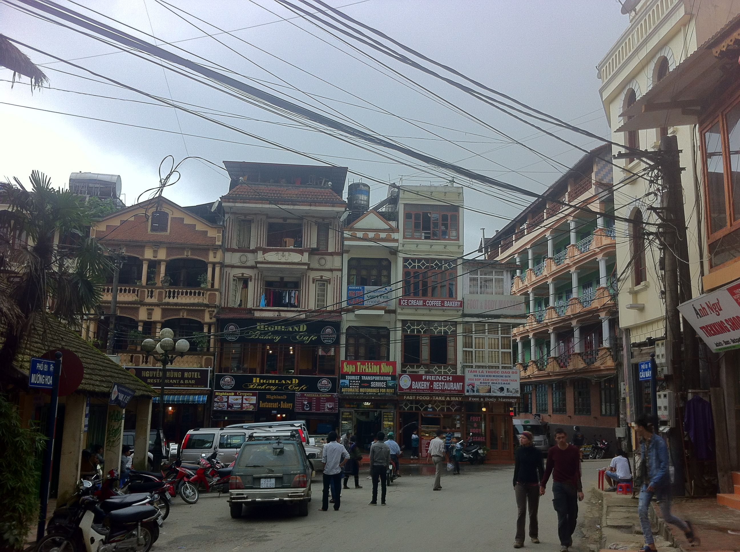 Onwards another hour or two, to Sa Pa. Sa Pa was a former French outpost, a pretty little town in the mountains. Unlike the rest of the trip, this place is decked out for tourists: more English signage (haven’t seen, well, any, since Hanoi), more touts selling their wares, more white faces (haven’t seen, well, any, since Hanoi). We have some excellent grilled fish, and I walk around the town for an hour or so while TT stays at the restaurant.